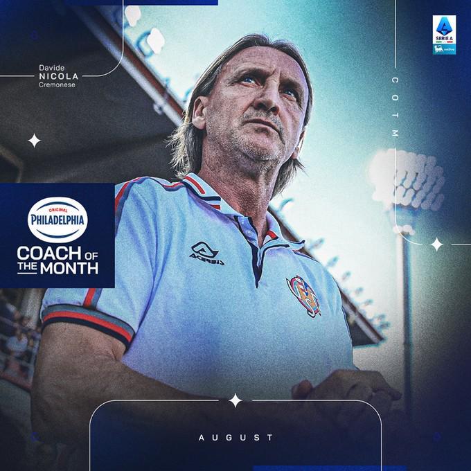 北京时间9月12日,意甲官方宣布,克雷莫内塞主帅尼科拉当选联赛8月最佳教练。