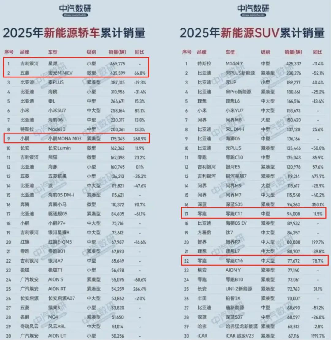 图/2025年轿车-SUV部分销售数据
